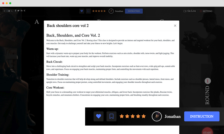 Organize your workouts effectively with the "Rounds" feature. Create structured training sessions with designated rounds, ensuring that your workouts are both challenging and well-structured.