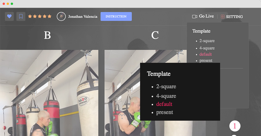 Tailor your viewing experience with four layout options. Choose the "default" layout for a balanced view, opt for "1 video layout" for a focused perspective, go for "2 video layout" to compare two videos seamlessly, or select "4 video layout" to create a comprehensive training dashboard.