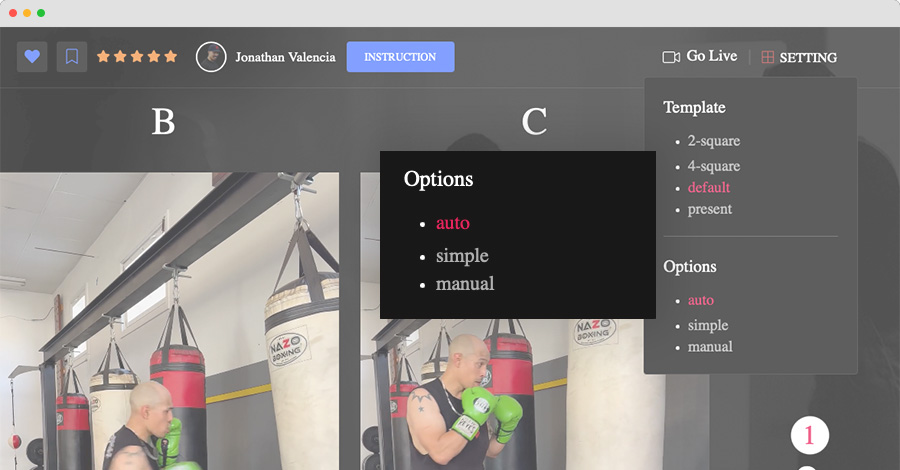 Take control of your training with three playback options. Use "Auto Play" for a hands-free experience, switch to "Manual" to control video playback at your own pace, or simplify the process with "Simple" mode for uninterrupted training sessions.